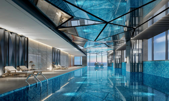 同步配套超五星级奢华酒店、无边际恒温游泳池云端会所、多功能健身房、空中大堂